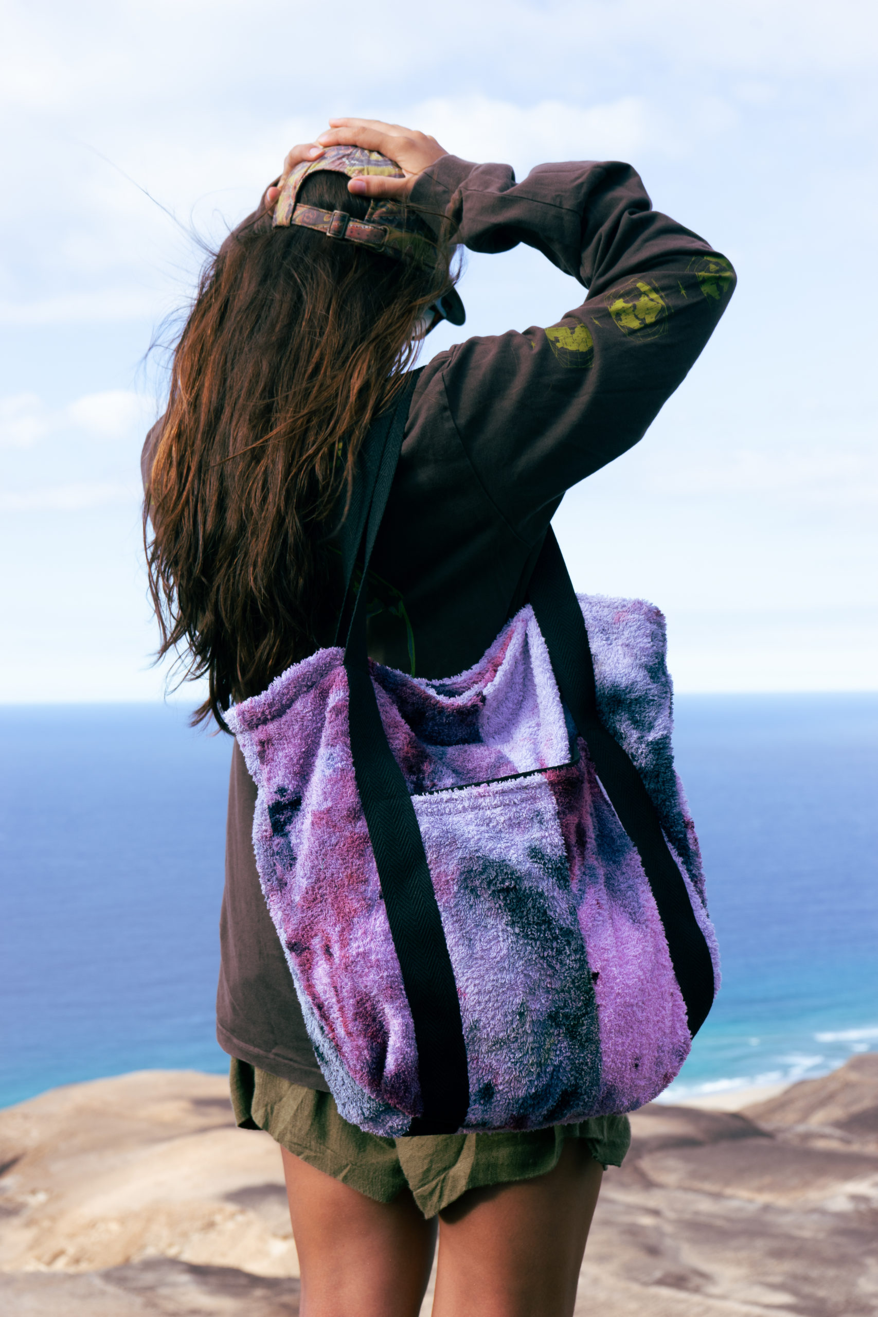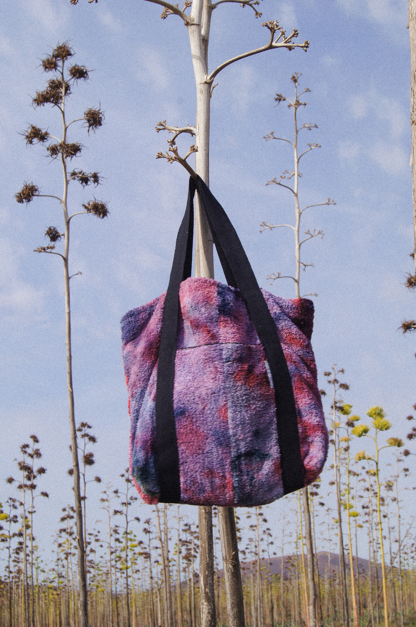 Nuestro TOTE BAG es el mejor accesorio funcional para el día a día. Está fabricado a partir de toalla 100% algodón de fin de stock teñida a mano y cinta resistente.